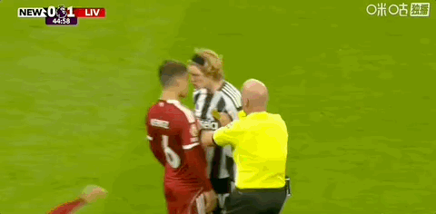 第45+3分钟,戈登飞铲范戴克,裁判查看VAR后改判红牌将其罚下