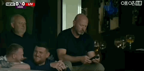 第10分钟,名宿观战,纽卡斯尔传奇射手阿兰-希勒出现在看台