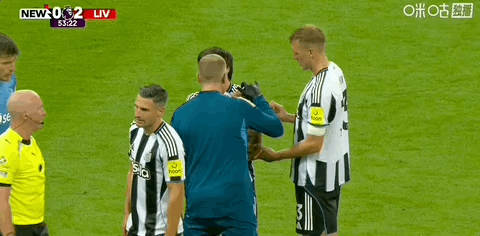 第54分钟,托纳利疑似肩膀脱臼,队医进场治疗